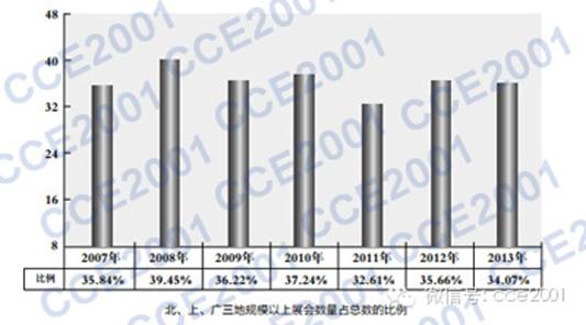 2007年北上廣三地入選展會81個,占全部226個展會的35.84%。