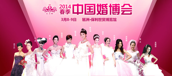 中國婚博會(huì)——全球超大規(guī)模、世界品牌結(jié)婚展。2014春季中國婚博會(huì)將于3月8日-3月9日再次在琶洲保利世貿(mào)博覽館隆重召開!屆時(shí),來自英、美、法、意、日、韓等2500個(gè)國際國內(nèi)頂級(jí)品牌、30萬款結(jié)婚新品,送現(xiàn)金、送家電……盛大特惠廣州結(jié)婚新人,讓您享受高性價(jià)比一站式結(jié)婚采購服務(wù)、輕松籌備您的品質(zhì)婚禮。