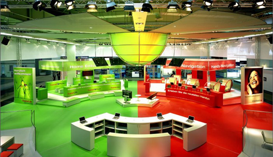 以上就是沃達豐在柏林IFA展會上的展臺,火熱的紅色將其品牌形象表現(xiàn)到了極致。