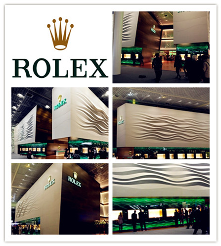2013巴塞爾鐘表展上勞力士的展臺將其企業(yè)標準色用在了設計的每一個地方。