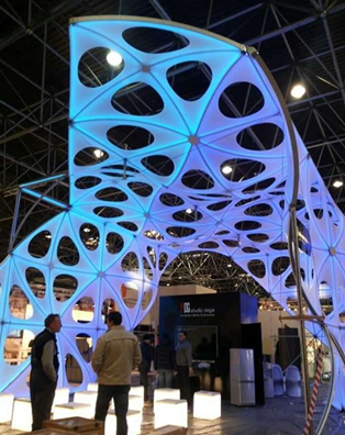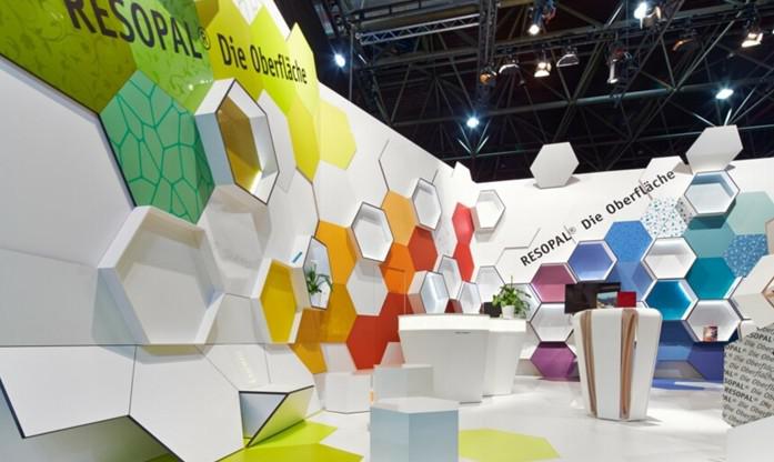 Resopal是德國有名的從事制造業(yè)的公司,他們的展臺把蜂窩元素和多種色彩相互融合,時尚潮流,新穎大氣,參觀過的采購商都覺得好看。