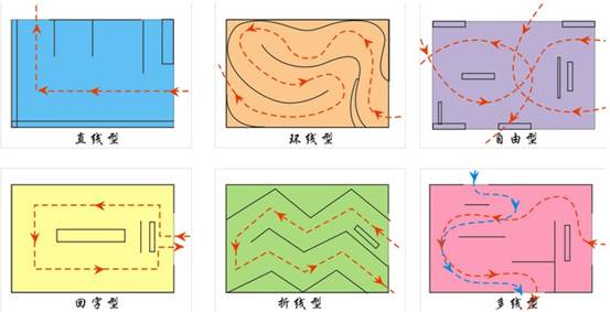 人作為展會(huì)活動(dòng)的主體在展臺(tái)空間中處于參觀運(yùn)動(dòng)的狀態(tài),是在運(yùn)動(dòng)中體驗(yàn)并獲得最終空間感受的。對(duì)展臺(tái)空間的組織在一定程度上依據(jù)參觀者在空間中的行動(dòng)路線,同時(shí),也要根據(jù)展品內(nèi)容及其空間分布安排動(dòng)線走向,對(duì)動(dòng)線劃定要明確順序性、便捷性和靈活性。動(dòng)線在展覽中的作用,更加明確了人和空間的關(guān)系,體現(xiàn)了以人為主體的空間設(shè)計(jì)觀念。